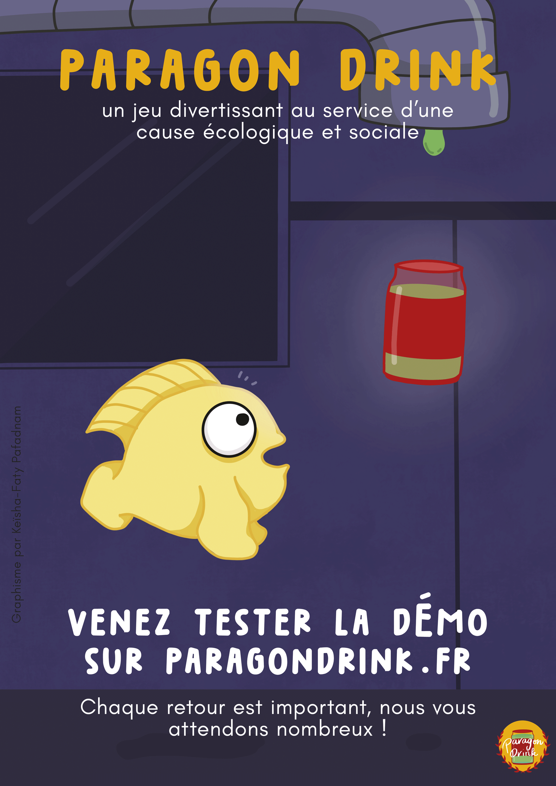 Paragon Drink est un jeu web éducatif qui met en scène un petit poisson captif d’un laboratoire, exploité pour