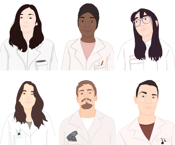 Réalisation des arrière-plans principaux et illustration des membres de l’équipe pour renforcer l’identité du projet.